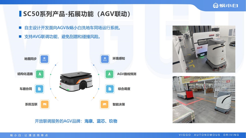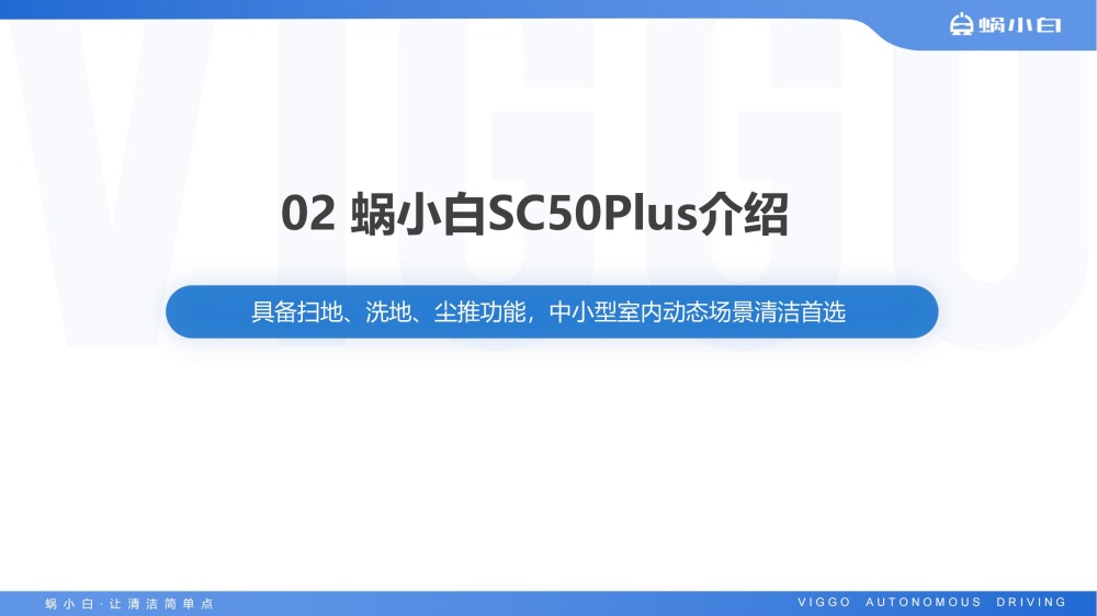 蜗小白SC50无人驾驶洗地机是智行者科技推出的一台洗扫推一体,一机多用的通用型智能清洁洗地车,具备精准环境感知、自动路径规划、自主避障、自动充电、自动加/排水、污水自动过滤等功能,可轻松应对水泥、大理石、PVC等各种室内中小型场景硬地面。