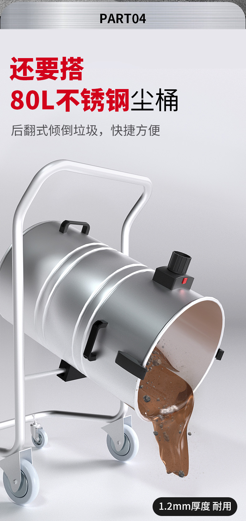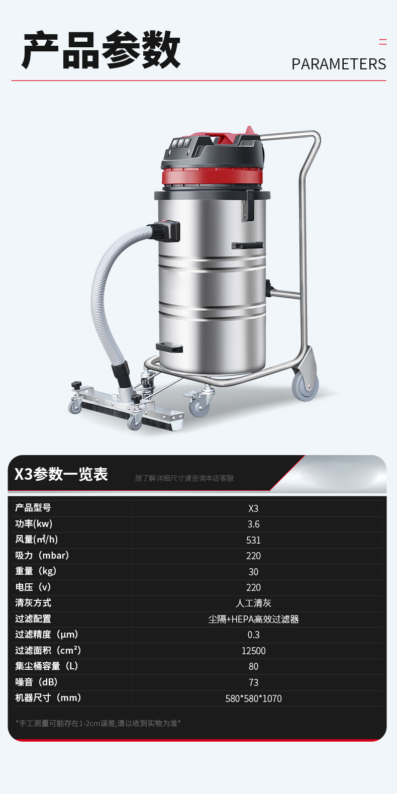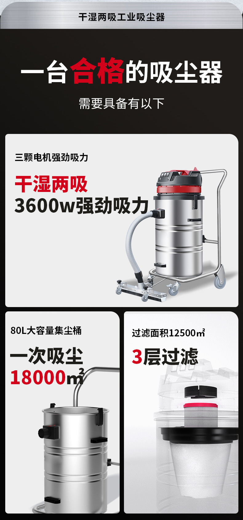 荣昌坦洁380V双桶不锈钢工业吸尘器X7系列