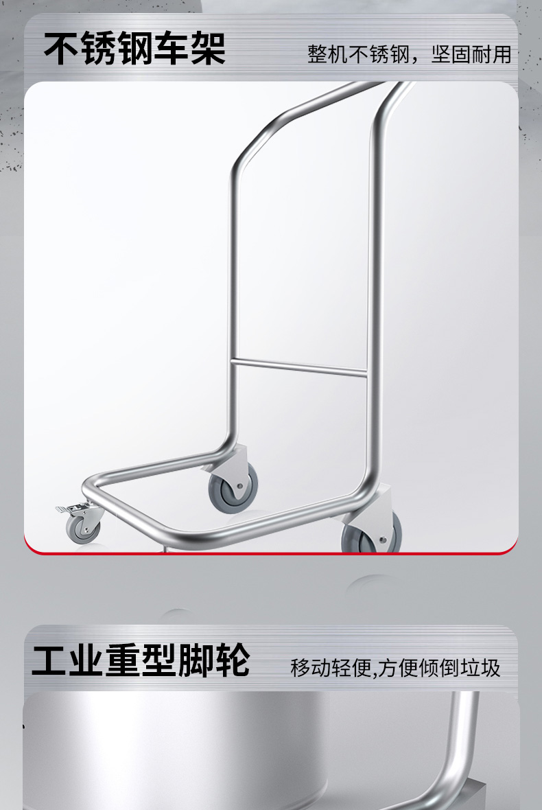 荣昌坦洁220V单桶不锈钢工业吸尘器X6系列