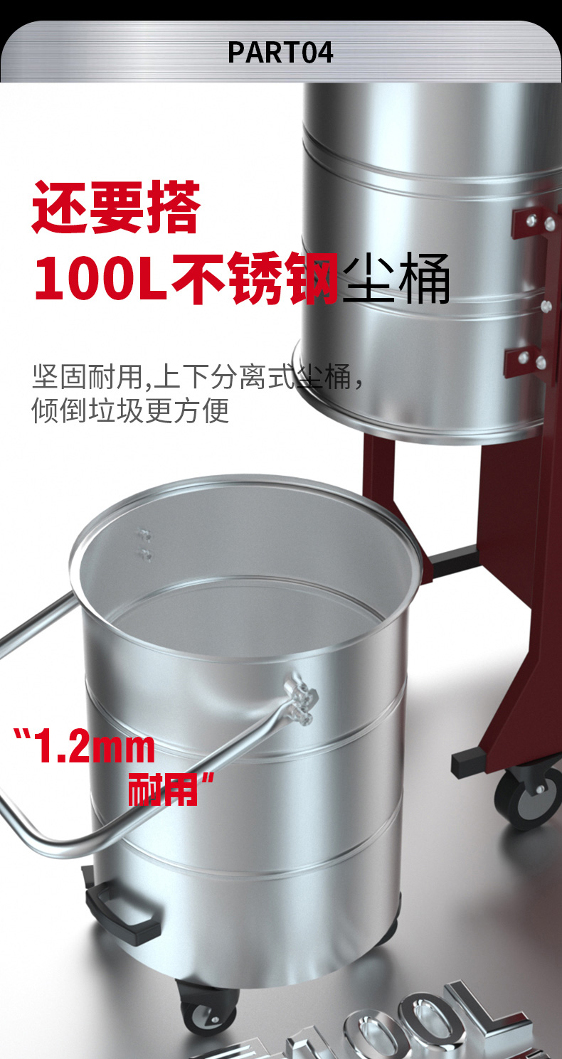 荣昌坦洁380V双桶不锈钢工业吸尘器X7系列